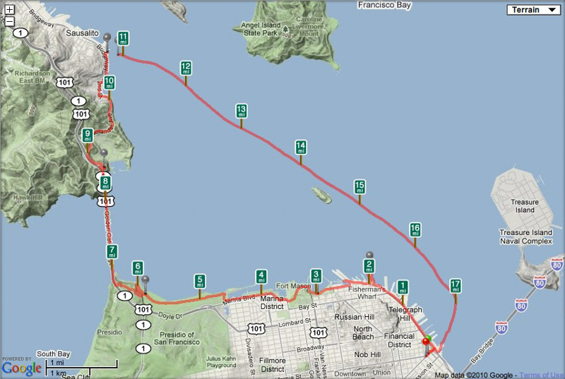 Before you get to the bridge there is another (bigger) hill. Once on the bridge you will be amazed by this engineering masterpiece, the Golden Gate is so beautiful! After crossing the bridge continue down to Sausalito, where you can eat a well deserved ice cream. Finally, take the ferry back to Ferry Building and enjoy beautiful sights of the city from the boat. To complete my directions, here is a map of the route. So how does this bike tour sound? Get a group and go for a ride this weekend!