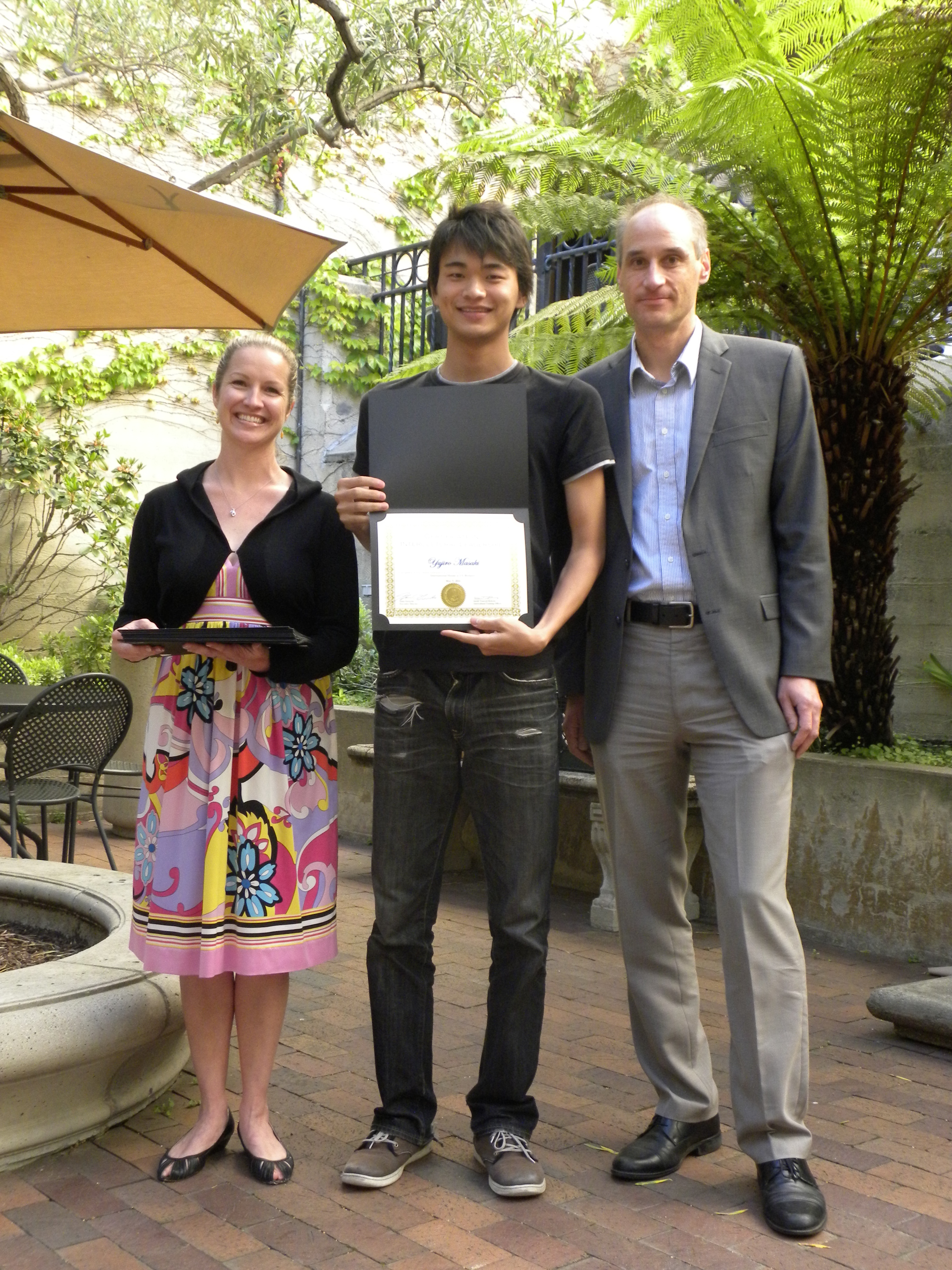 Spring 2014 ILI participant Yujiro with his Certificate in Intercultural Leadership from CIL staff Breidi and Jason