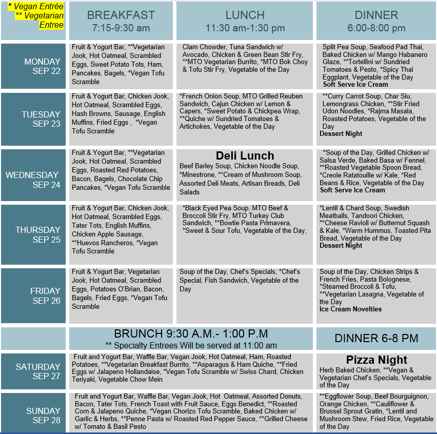 September 22 -28 Menu