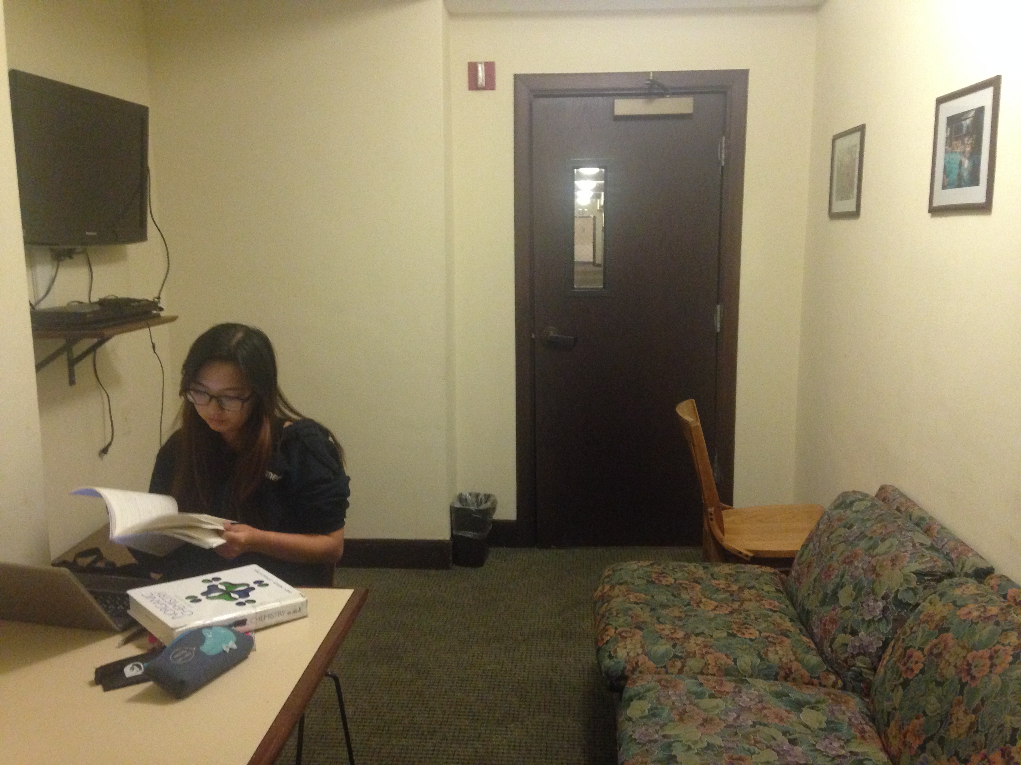 Wait! Don’t Panic! Given the all time quiet hours rule during finals, there is one more place that will always be open. Just step out of your room and you will find the vast carpeted hallways silently waiting.