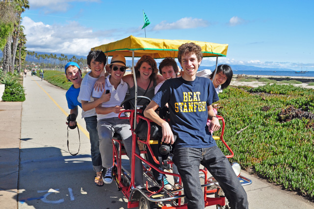 Now, Santa Barbara is not just about partying. During the day there are a lot of things to do as well. First, there is the beach. You can just take it easy, relax, and sunbathe. You can also walk on Stearns Wharf, the Santa Barbara pier that has many restaurants and shops. If you want to be a little more active, you can rent a quadricycle and cruise along the beach. It is a lot of fun!