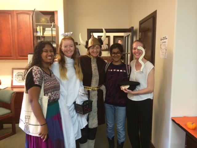 Happy Halloween everyone! We had a festive Halloween party today in the Great Hall, complete with a costume contest, scary delicious treats, and a candy corn toss game. Guess who won first place? Answer below….