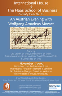 International House and the Haas School of Business cordially invite you to an evening of classical music by Wolfgang Amadeus Mozart.