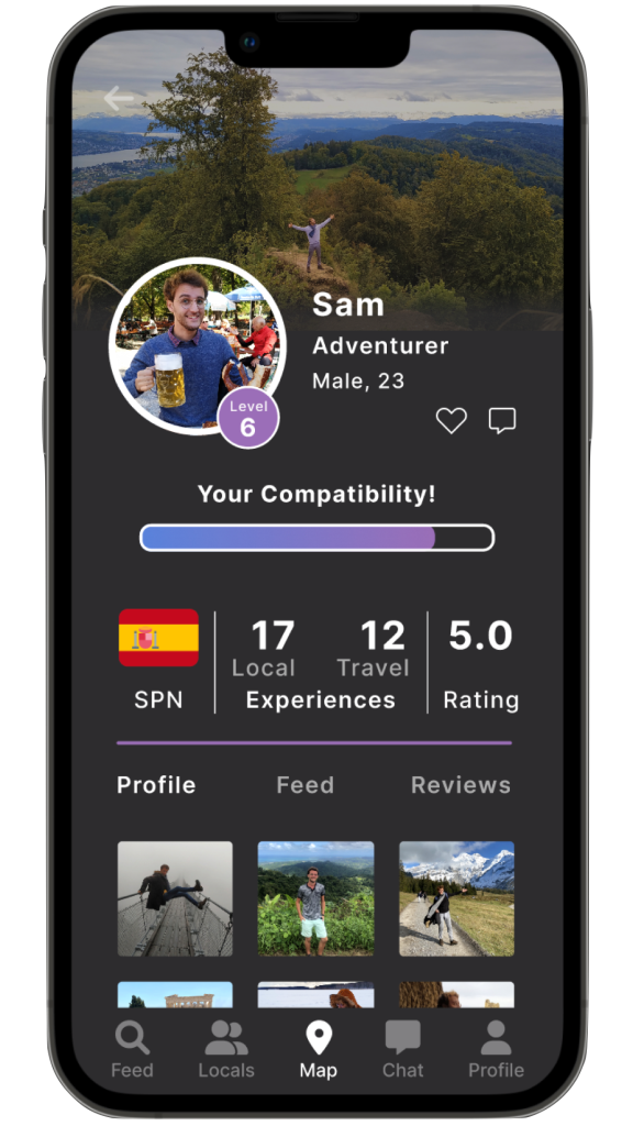 Feeling bored in your hometown? Reverse the experience and become a local. Our app offers dual usability in a single click! You’ll meet travelers with compatible interests, personalities, and profiles visiting your city. Think about showing some Cal Bears what makes your hometown special! We enable our locals to expand their network of international friends and provide them with the opportunity to share the wonders of their home cities with the rest of the world.