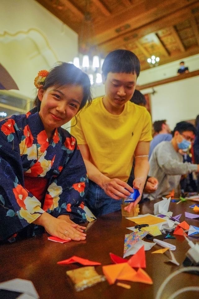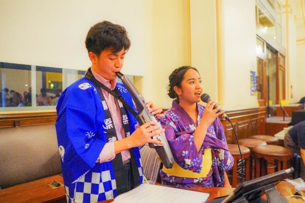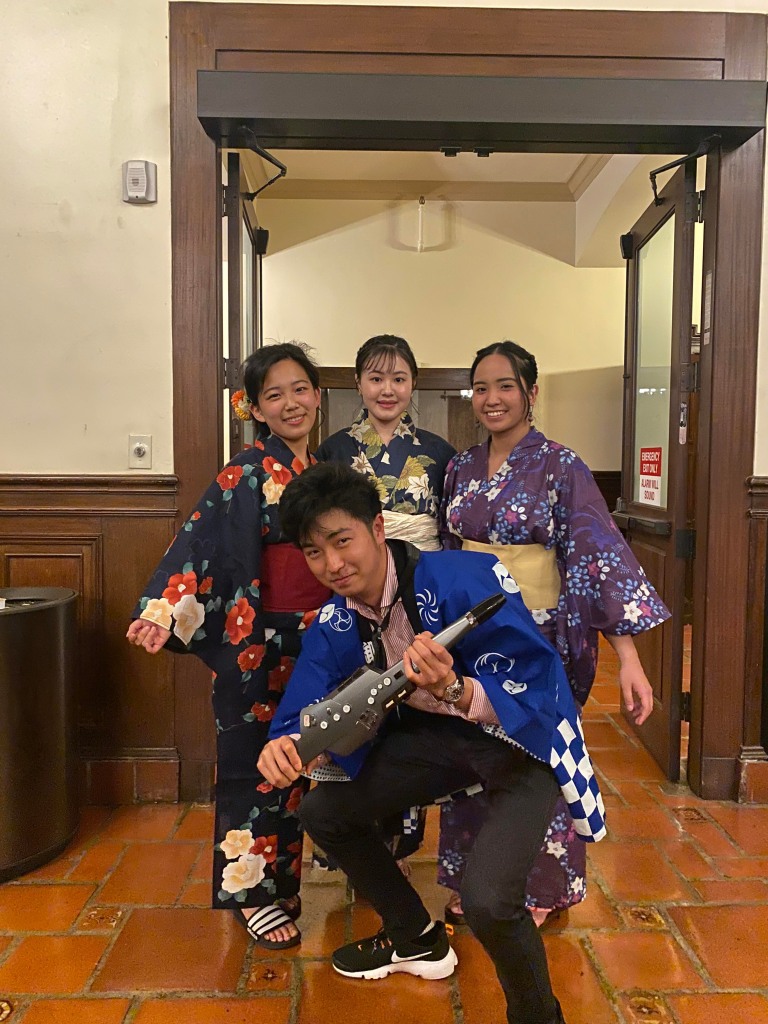 Watching the Great Hall transform into what looked like a Japanese summer festival back at home was surreal, with Japanese residents walking around in beautiful yukatas, origami crafts at every corner, and lively J-pop and J-rock music echoing throughout the building. I had the opportunity to perform three songs with talented saxophonist and one of my closest friends, Shudo Yoshiara, who was an exchange student from Keio University. At first, singing in front of everyone made me nervous, but the crowd of residents that gathered in front of us quickly put me at ease, as it was really nice to see everyone having a good time. I really enjoyed watching my friends participate in the yukata photoshoot, as well as the trivia games that our resident event organizers had put together. I’m truly thankful to have had the opportunity to share what I love most about the place I grew up in with the rest of the I-House community!