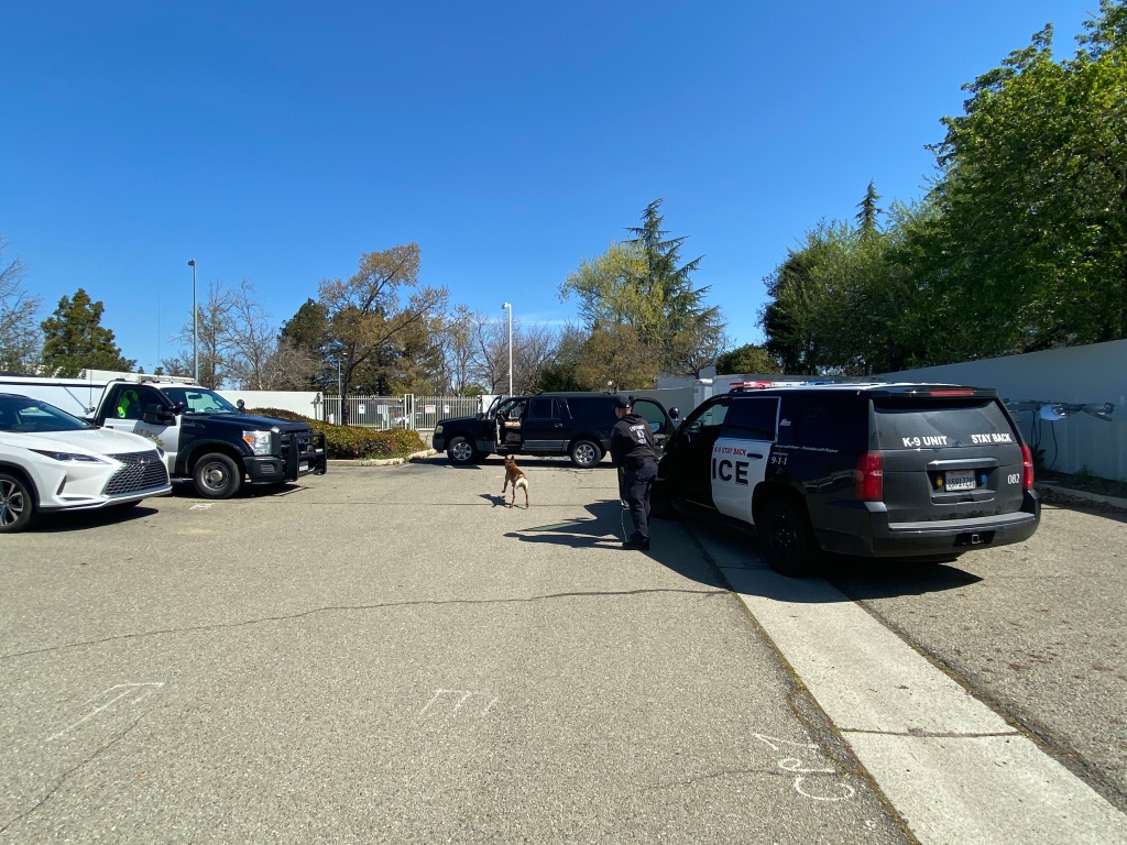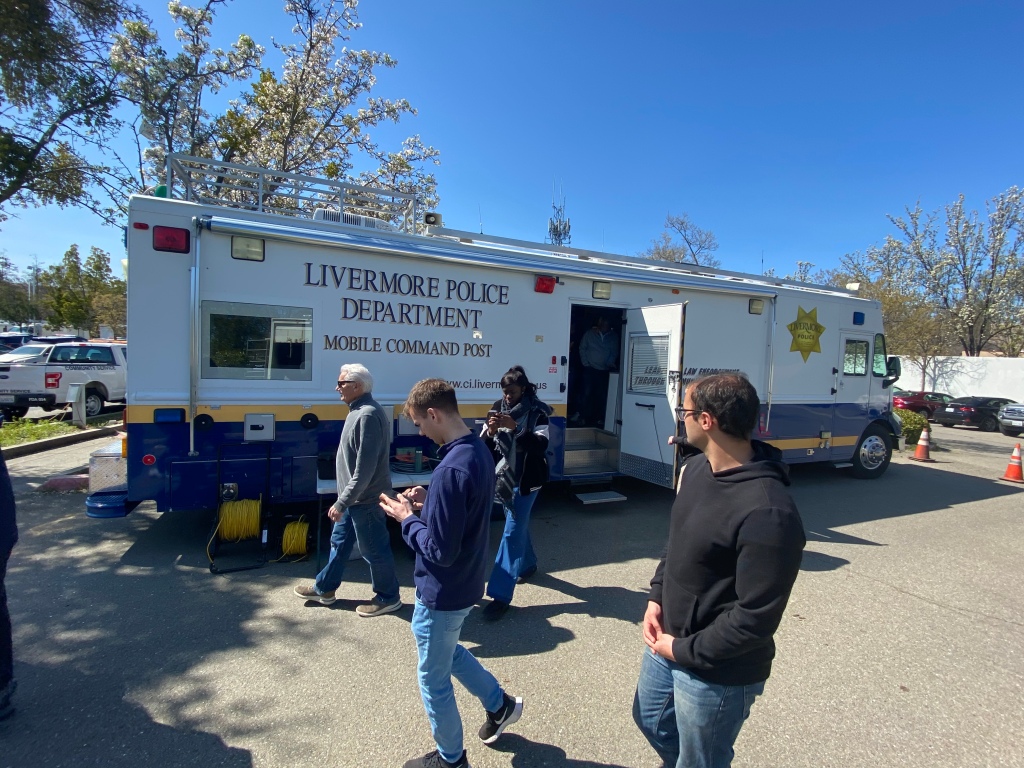 While walking to the Police Department, we saw the Livermore Peace Monument. The Captain and Lieutenant Steve showed us around the station revealing that the station is one of the oldest in the Bay area. In the police conference room, the structure and organization of the department were shown on slides. They also showed a virtual simulation called Virtra used to train officers on how to respond to cases. Outside the building, the SWAT team illustrated how they operate equipment like robots when the need arises. The most interesting part was watching the K9 unit demonstrate with their guard dog. The last visit to the station was seeing the Mobile Command Post, which was literally offices in a big vehicle.