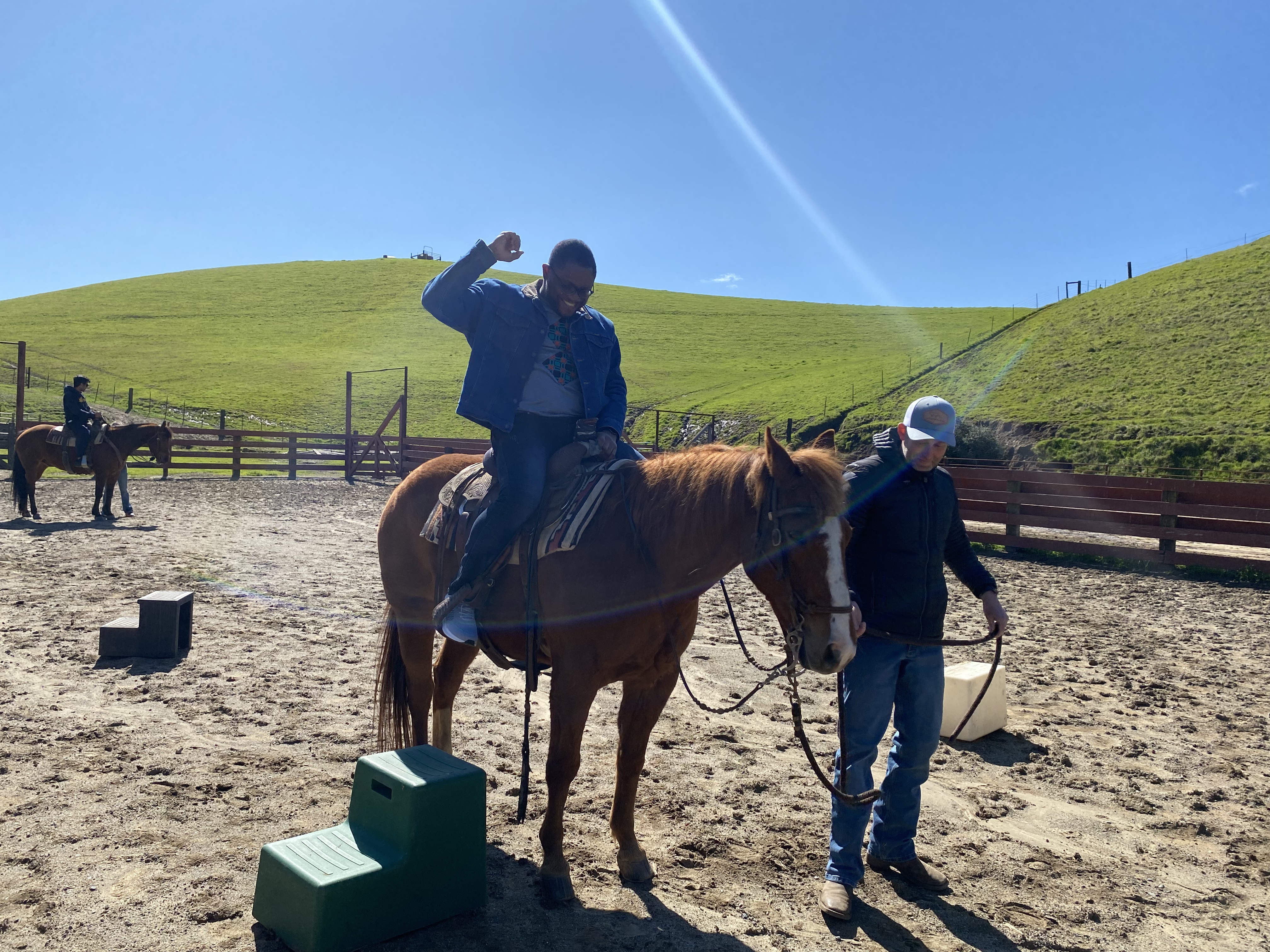 Paul took us on a ride through the windy road up the hills. The beautiful Crista Blanca hills came into view when we rode up a windy road on the serene hills. We also saw Mount Diablo from the zenith of the ranch. The pretty view opened up a vast green valley with trees dotting different points and yellow-dusted rocks. The land provides a habitat for millions of creatures, bugs, lizards, worms, grasses, flowers, etc. The diversity keeps animals and plants thriving. Closer to the ranch I could hear the horses neigh and the birds sing for those who cared to listen. After hours of riding horses, we then drove to Paul’s house for some refreshments. I am thankful to Chris and Lisa, for helping us ride or walk the horses.
