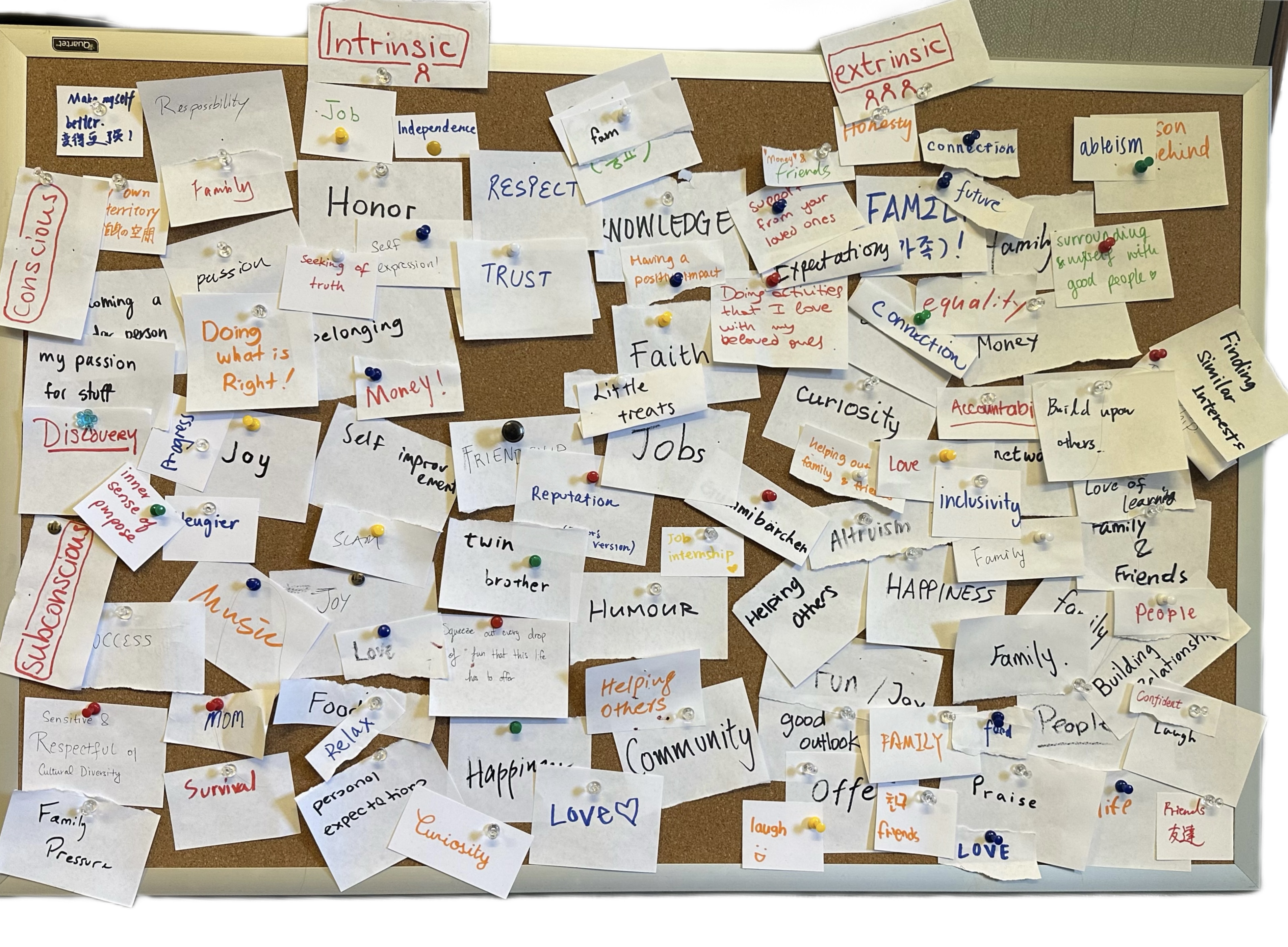 What is the first thought or emotion that comes to your mind, and what do you desire deeply? Leo, the host of the German booth, offered this fun game at ICF where we had to think of an emotion or thought and write on paper and put it on the board. Have a look at the different first emotion or thought people can think of. We all can clearly use some friends, love, trust, and community.