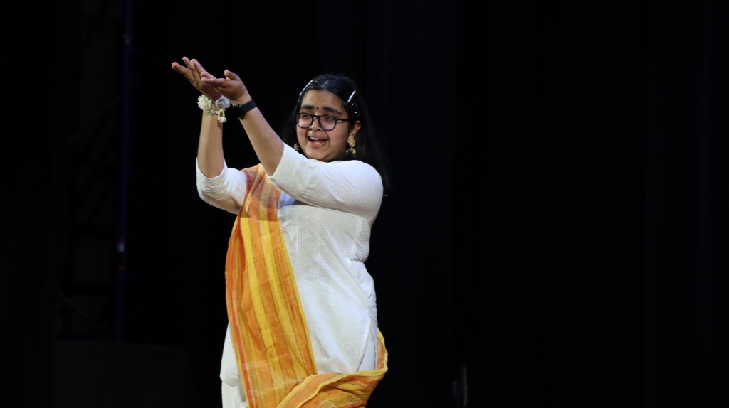 Likewise, the South Indian classical song performed by Arogya and Smruthi was enchanting. This was followed by the dance performance “Pujor Machlish” by Pratiti Ketoki. Later, to lighten up the mood, we had a little more K-Pop by Lena Yi and Kayla Park (Sould Berkeley).