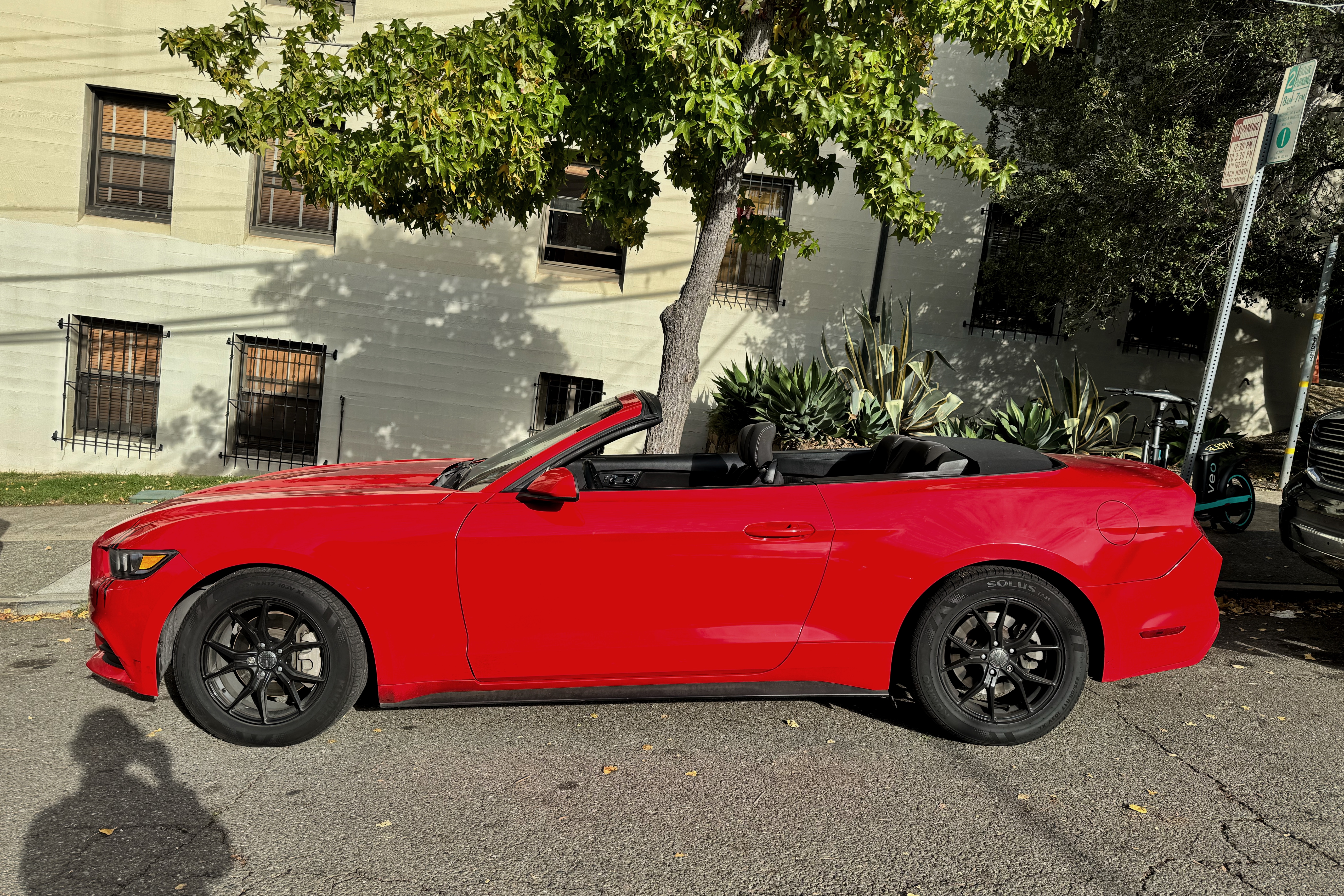 We got up early on the 22nd to find a gorgeous red Ford Mustang in scarlet waiting outside. Shrey and Joseph had managed to get a good deal on renting the car from an acquaintance. The car was a convertible too. Maybe not the best suited for this weather but there was no way we would do a road trip without the ability to drop the top.