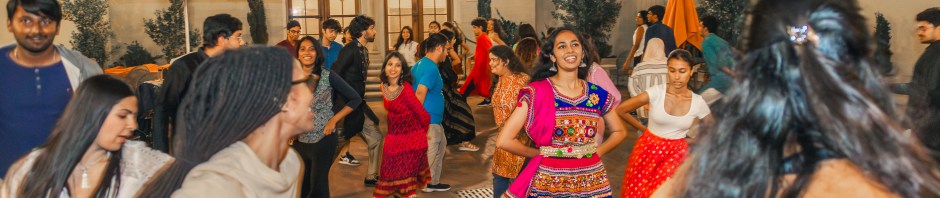 Picture this: As the sun sets and the sky transforms into a canvas of brilliant hues, I-House residents begin trickling onto the Heller Patio. The air is filled with warmth, excitement, and festivity. Girls wear flowing chaniya cholis and lehengas (traditional South Asian long skirts) adorned with elaborate embroidery and mirrors, while the guys don vibrant kurtas. Residents form large concentric circles, performing and chanting the movements for the Indian folk garba dance steps I had taught them moments ago: “Forward, forward, back, back, forward, forward, spin!” The energy is contagious as people pull their friends—beginners and skilled dancers alike!—into the circles, while residents overlooking the patio rush downstairs to join the celebration. The spirit of unity and inclusiveness flourishes as everyone moves together under the warm lights of the Heller Patio.